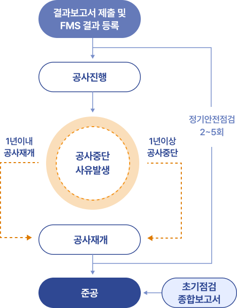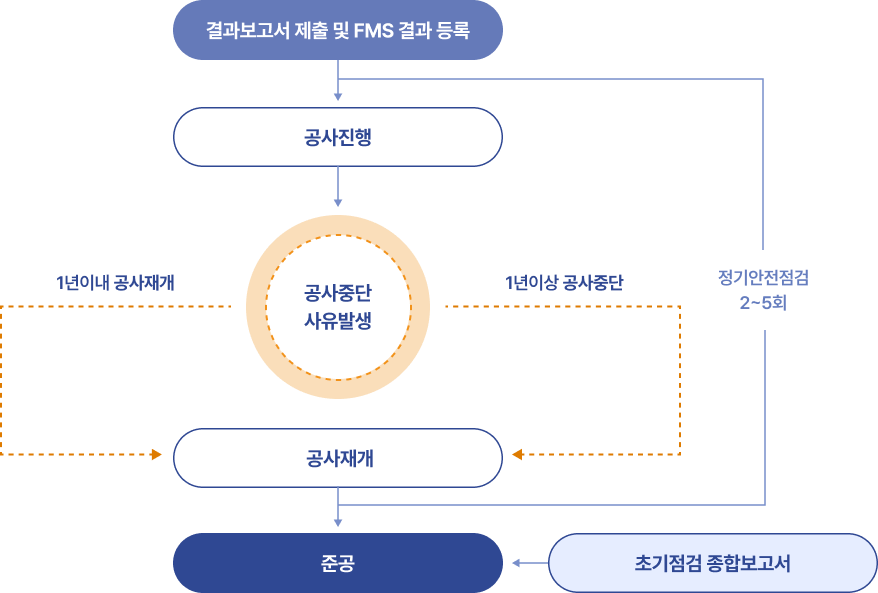• 공사 재개전 안전점검 : 1년 이상 공사 중단 후 재개시 시 실시